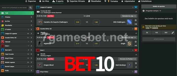 A aposta bet10 oferece aos jogadores a experiência mais conveniente de apostas em eSports!